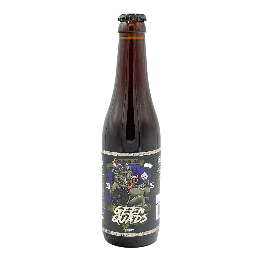 GeenQuads – Belgisch gebrouwen, zwijns krachtig. Laat je niet misleiden door de naam. GeenQuads is een smerig krachtige quadrupel, gebrouwen op Belgische wijze en barstensvol karakter. Een zoete dans van karamel, diepe mouttonen en subtiele kruiden maken elke slok rijk en gelaagd. Vol, warm en intens precies zoals een echte quad hoort te zijn. Geen half werk, geen compromis, alleen smaak.