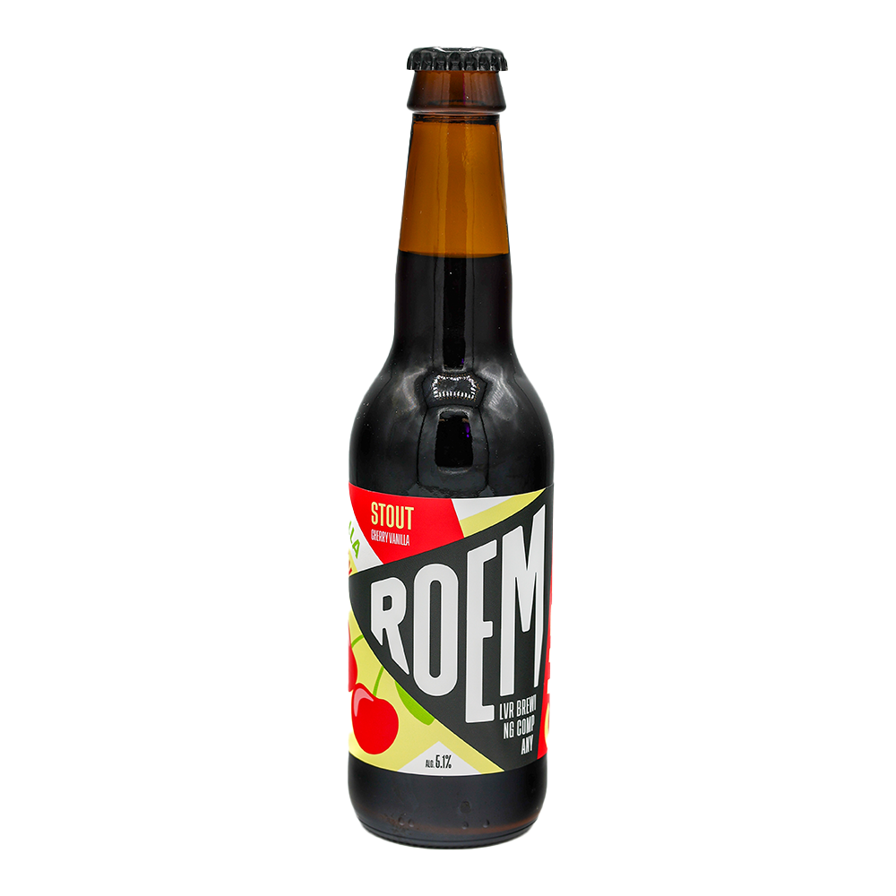ROEM Cherry Vanilla Stout – Donker, zoet en verleidelijk. Deze stout is puur genieten! ROEM Cherry Vanilla combineert diepe, donkere mouttonen met sappige kers en zachte vanille voor een rijke, dessertachtige ervaring. Vol en romig, met een zoete twist die perfect in balans blijft met de geroosterde basis. Elke slok is warm, rond en gevaarlijk lekker. Fruitig, fluweelzacht en onweerstaanbaar.